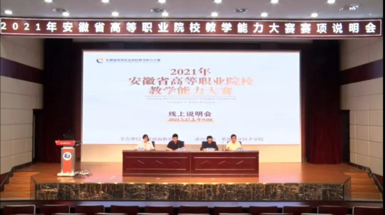 为了深入贯彻落实《国家职业教育改革实施方案》和职业教育“十四五”发展规划,引导师生更好地适应疫情防控常态化教学要求,持续深化三教改革,提升各校在确保质量型扩招等新形势下的教学管理能力,5月27日上午,2021年安徽省高等职业院校教学能力大赛线上说明会在芜湖职业技术学院南校区学术报告厅顺利召开。