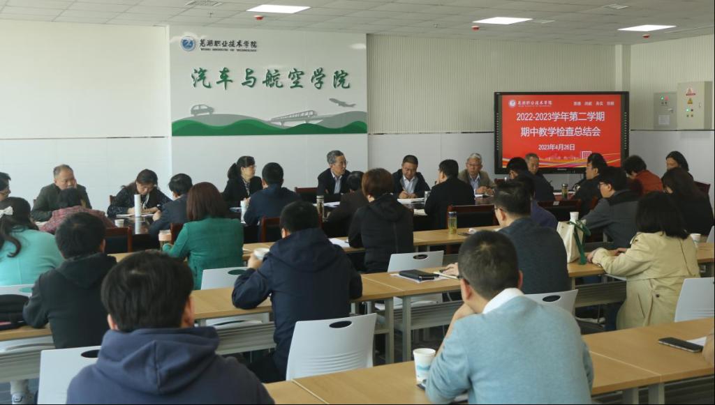 为深入学习贯彻党的二十大精神,推进学校职教本科创建和“双高计划”建设工作,进一步规范教学管理,促进教风与学风建设,不断提升学校的教学质量和管理水平,4月26日上午,学校在银湖校区汽车与航空学院会议室召开2022-2023年第二学期期中教学检查总结会。校党委副书记、院长高武,党委委员、副院长季慕寅出席会议并发言,教务处、教学督导与质量监控处、招生就业处、人力资源处等职能部门及各二级学院(部)负责人参加会议,会议由校党委委员、教务处处长娄洁主持。
