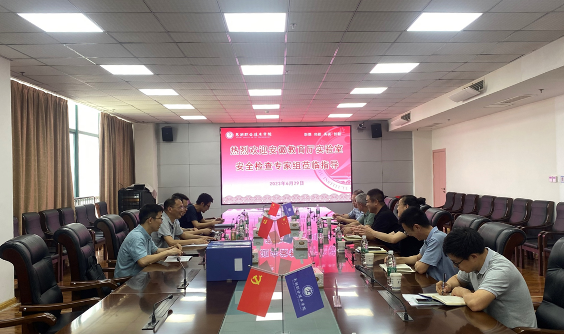 根据省教育厅工作安排,6月29日下午,安徽省教育厅高校实验室安全检查专家组第15组组长安徽工程大学国有资产与实验室管理处处长胡章文副教授,现代教育技术中心(工程训练中心)副主任冒国兵副教授、化学与环境工程学院院长助理李兴扬副教授、国资处设备管理维修科副科长邹步一行到我校,对我校实验室安全工作进行现场检查指导。校党委委员、副院长季慕寅出席会议,校党委委员、教务处处长娄洁,教务处副处长戴永清,保卫处处长王晓云,材料工程学院院长吴为亚,食品与生物工程学院副院长张冬冬等参会。