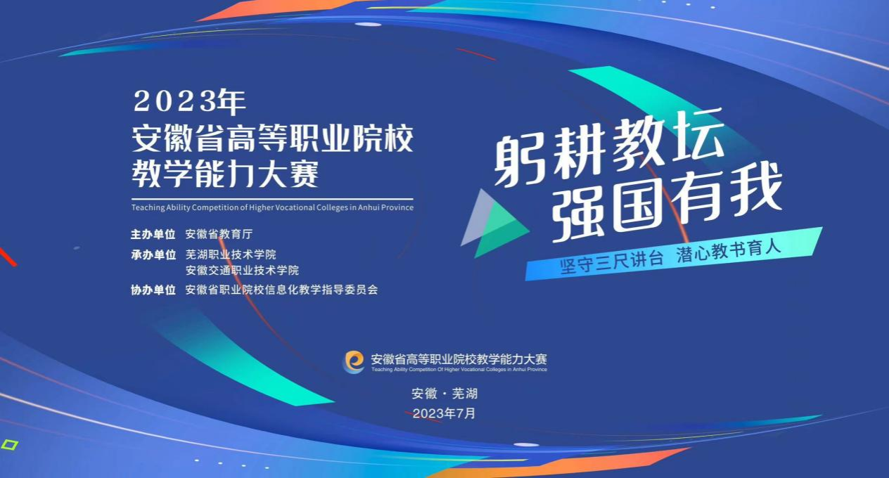 为深入贯彻党的二十大精神,落实习近平总书记关于职业教育工作的重要指示,进一步优化职业院校教师队伍结构,充分发挥比赛的引领示范作用,引导安徽省各校深化职业教育教师、教材、教法改革,主动参与加快技能安徽建设,根据《安徽省教育厅关于举办2023年安徽省高等职业院校教学能力大赛的通知(皖教秘高〔2023〕70号)》文件精神,由安徽省教育厅主办,芜湖职业技术学院、安徽交通职业技术学院承办,安徽省职业院校信息化教学指导专家组指导协办的2023年安徽省高等职业院校教学能力大赛于7月8日至9日在芜湖职业技术学院和安徽交通职业技术学院顺利举办。