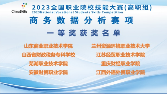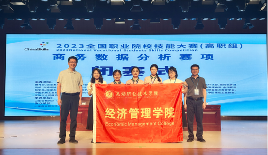 7月16日至17日,2023年全国职业院校技能大赛(高职组)“商务数据分析”赛项在山东省济南市举行。本次比赛由教育部等十几家单位主办,山东商业职业技术学院承办,来自全国30个省,共计79支队伍同场角逐。芜湖职业技术学院经济管理学院徐文静、赵子慧、张艳冉同学,王慧颖、闵继庆老师组成的团队,沉着应战,奋勇拼搏,最终以全国第五名的优异成绩荣获该赛项一等奖,实现我校财经商贸大类该项赛事新突破。