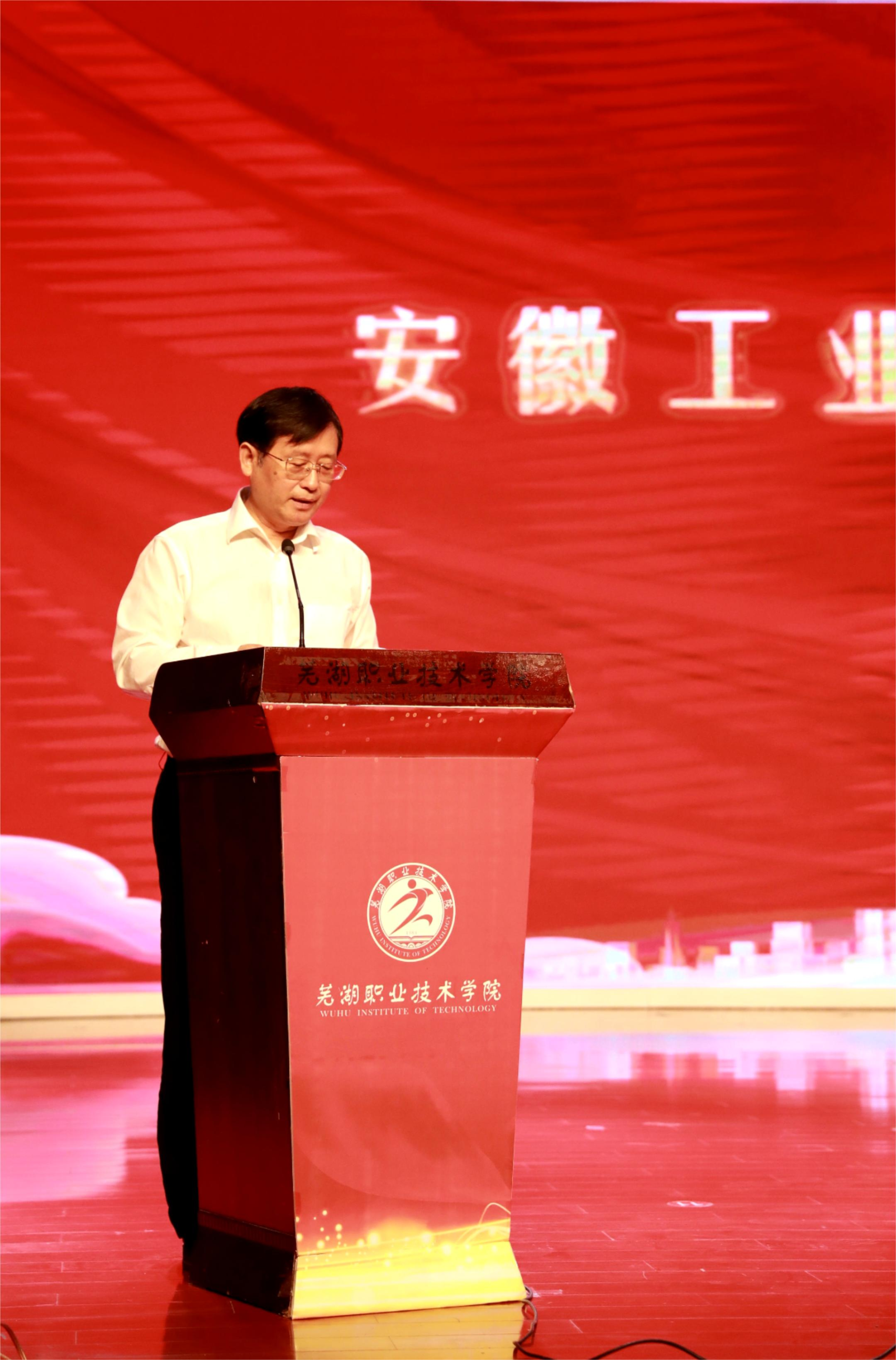 高武代表芜湖职业技术学院致辞。他表示,安徽工业大学和芜湖职业技术学院分别作为安徽省内基础条件优越、专业特色鲜明、改革成效突出、具有一定影响力的特色高水平大学和特色高水平高职院校,两校优势叠加,共同践行为党育人、为国育才的教育使命,联合培养成效显现。他对新生们提出“立德为先,修身为本”、“志存高远,脚踏实地”、“乐学善思,行而致远”三点希望,号召同学们“学起来”、“动起来”、“干起来”!要求同学们学会学习、健康体魄、健全人格;学会沟通,善于思考,懂得坚持;学好专业,将所学专业与今后的职业选择联系起来,将专业知识和岗位能力联系起来,将自身发展和区域经济社会发展联系起来。希望大家勤奋学习、砥砺奋进,在担当中历练,在尽责中成长,在实现中华民族伟大复兴中国梦的新征程上点亮青春理想。