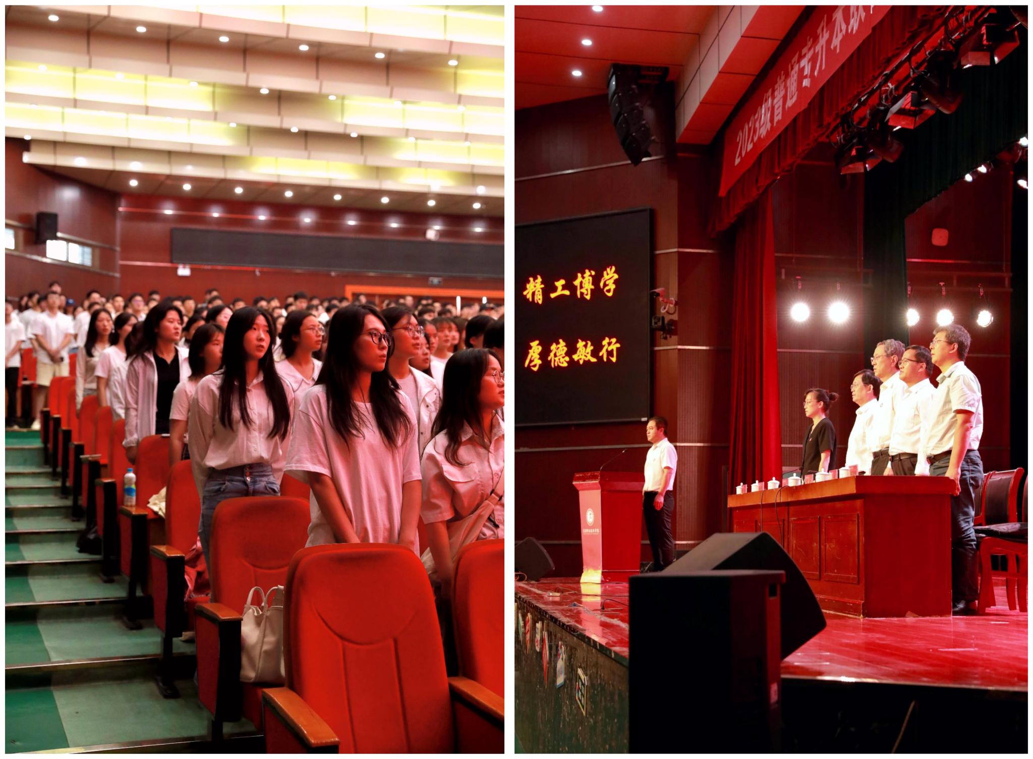 在庄严雄壮的国歌声中,开学典礼拉开序幕。