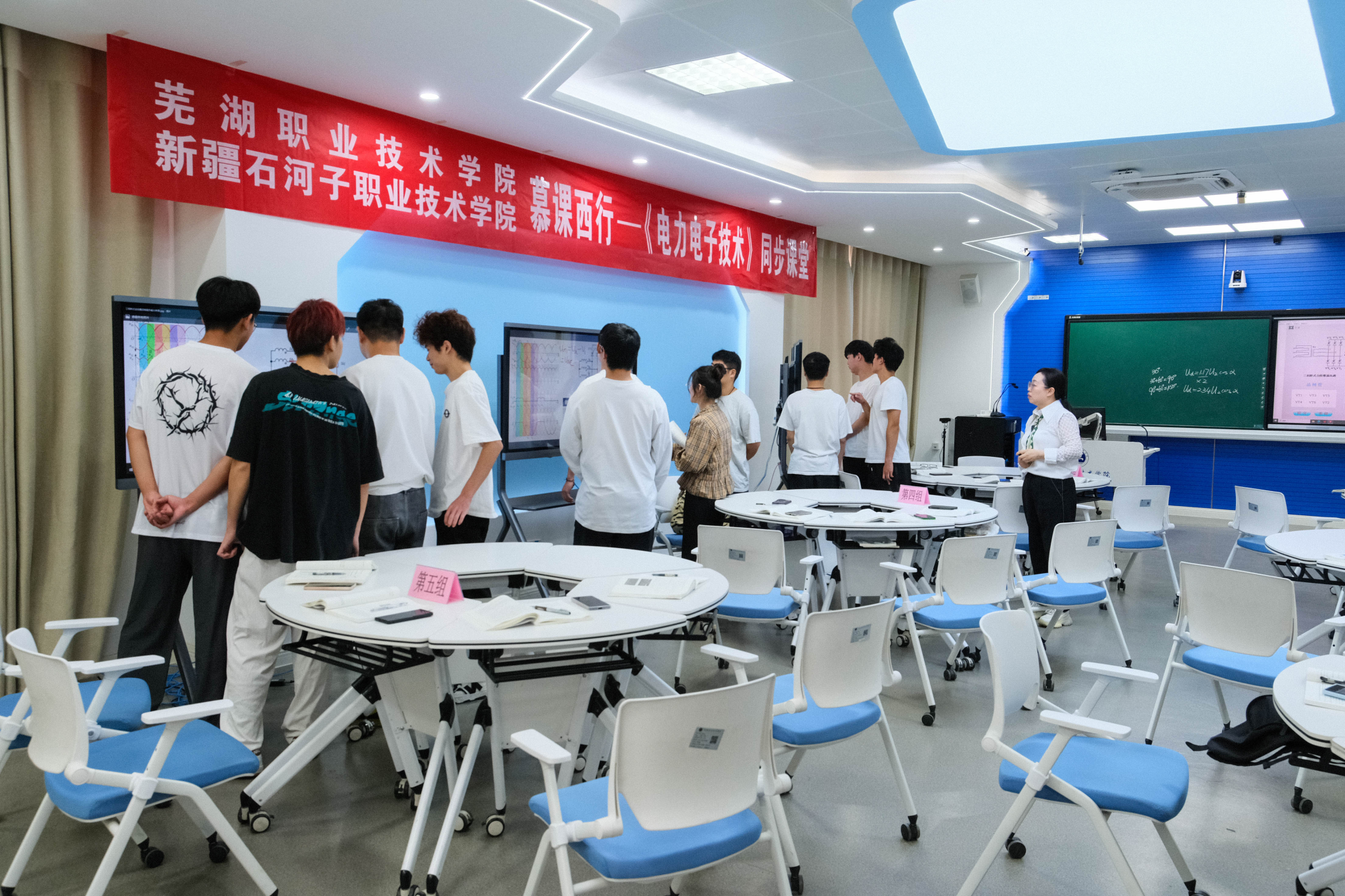 仪式结束后,我校电气与自动化学院副教授陈蕊老师担任《电力电子技术》第一次同步课堂教学主讲。陈蕊以三相桥式相控整流电路为主讲内容,运用启发式、问题导向、案例教学等多种教学方法,充分利用智慧教室等多种信息化教学设备,实现课堂教学的最优化。整堂课程教学内容丰富,学生积极互动,真正做到了同步上课,同堂提问,同堂讨论。课后学生们纷纷表示,通过本堂课程的学习,不仅为大家带来了新的学习体验,开阔了学习视野,也加深了对所学知识的理解,感受到了学习的快乐,希望今后能够继续参与同步课堂活动。