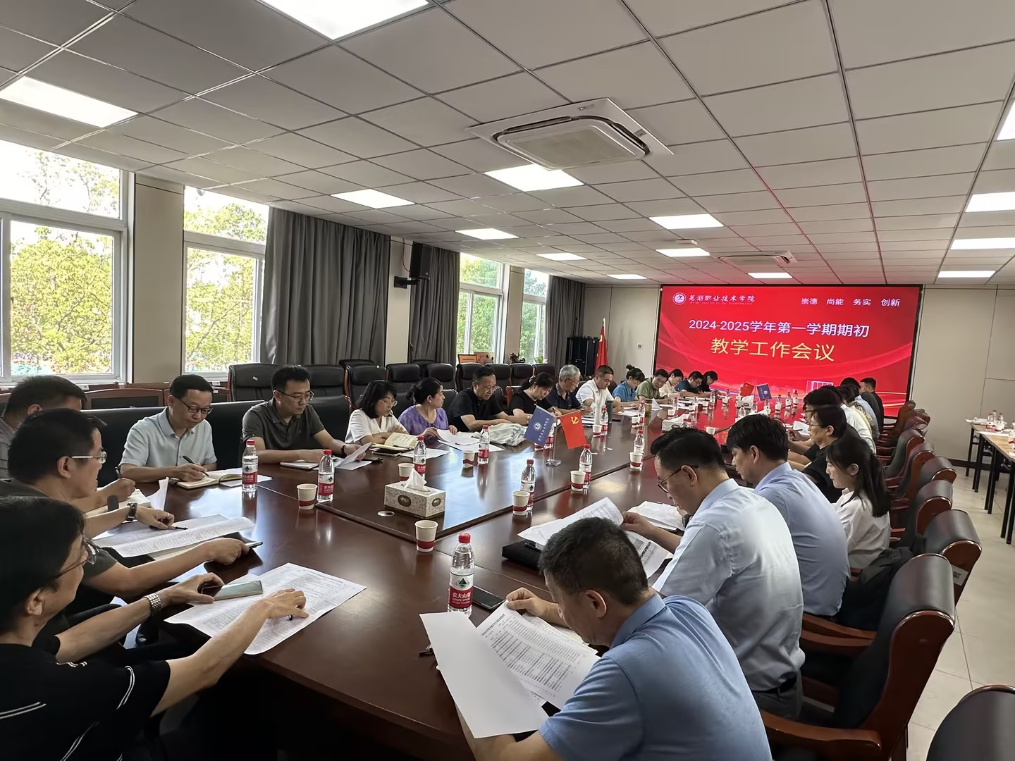 为确保新学期学校各项工作平稳、有序、高效开展,9月5日下午,学校在银湖校区信息与人工智能学院会议室召开2024-2025学年第一学期期初教学工作会议。会议由教务处副处长胡明主持,教务处、教学督导与质量监控处、招生就业处、学生处及各二级学院(部)教学负责人参加会议,校党委委员、副院长季慕寅出席会议并讲话。