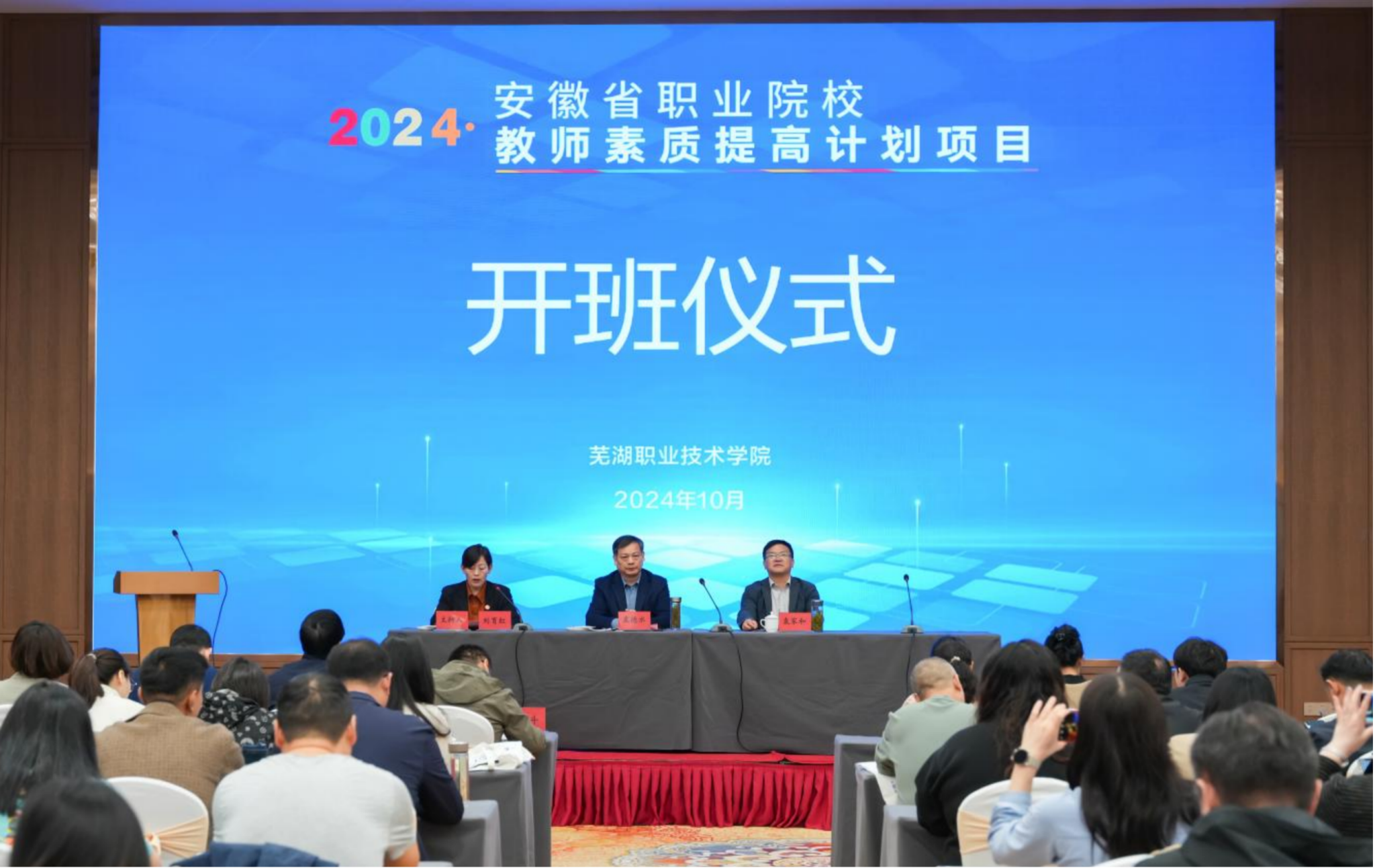 10月21日至10月31日,2024安徽省职业院校教师素质提高计划项目教师教学能力大赛专题培训暨产业教授教育教学能力提升两大项目在我校成功开班。本次培训深入贯彻习近平在全国教育大会和在安徽考察期间的重要讲话精神,严格落实安徽省教育厅的部署要求,立足于我校国家级职业教育“双师型”教师培训基地、国家级创新创业教育实践基地,全省多所高职高专院校近百名骨干教师和产业教授前来参训。安徽省高师中心主任袁德水,校党委副书记袁家和、副院长刘育红等领导及相关职能部门负责人出席开班仪式。
