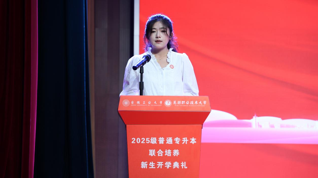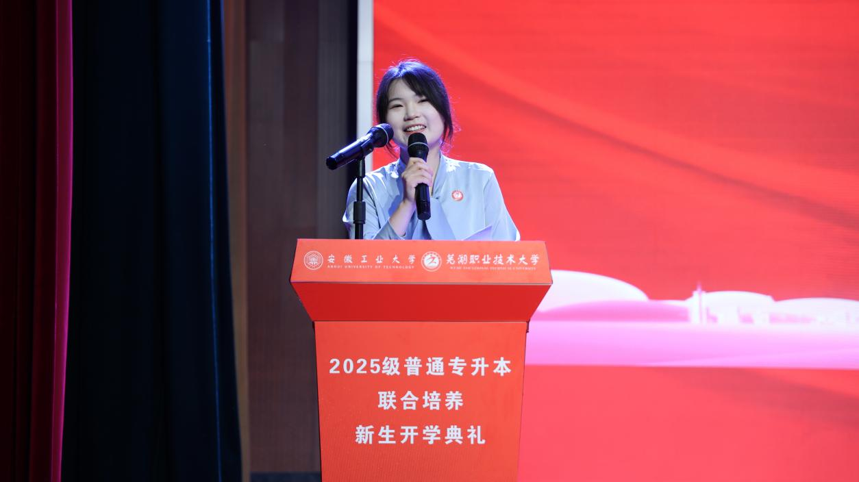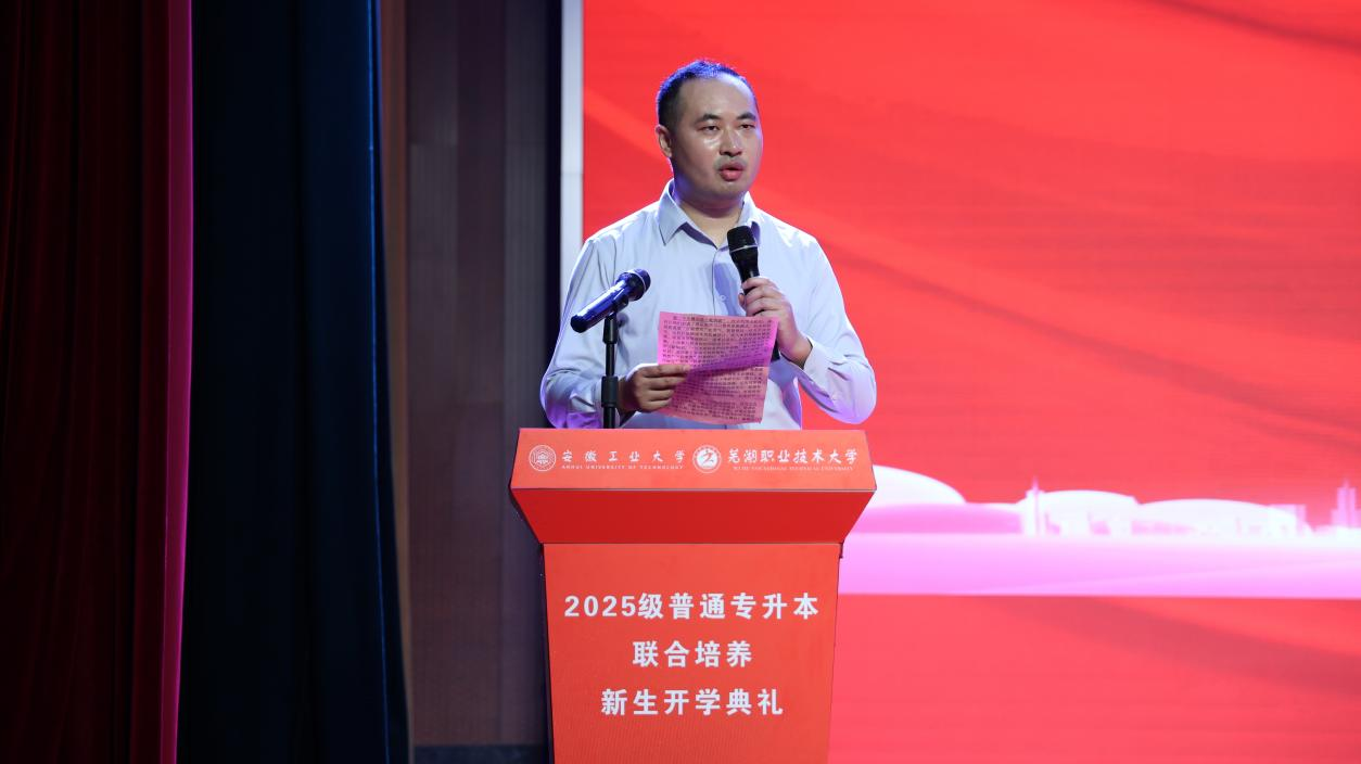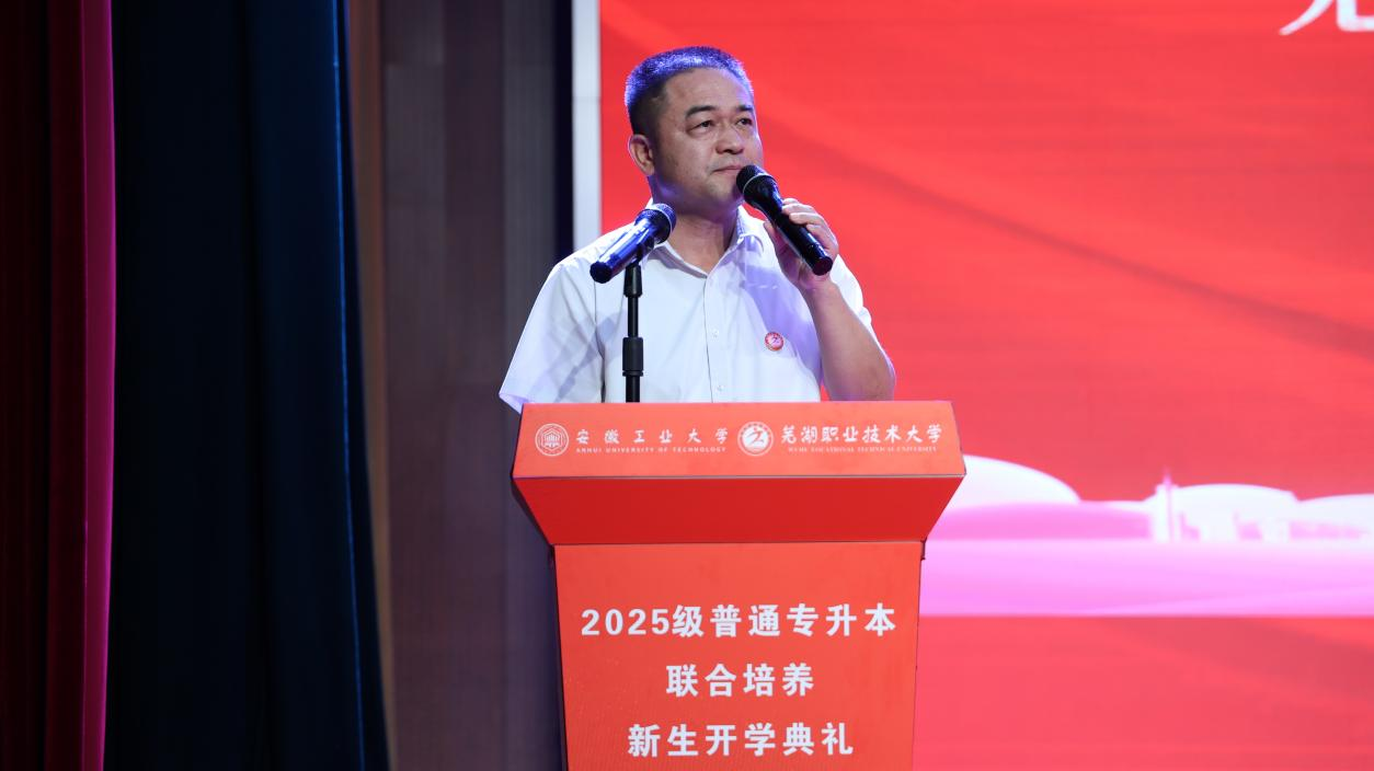 安徽工业大学副校长郑啸在讲话中表示,两校自2022年联合培养以来,已为社会输送1000余名联培学子。他对新生提出了三点希望:勿忘来时路,守初心、用实践优势;走好脚下路,扎根筑基、借力突破、破局创新;拼搏未来路,融个人理想于时代、多领域担当。寄语新生珍惜资源、把握机会,成担当民族复兴大任的时代新人。