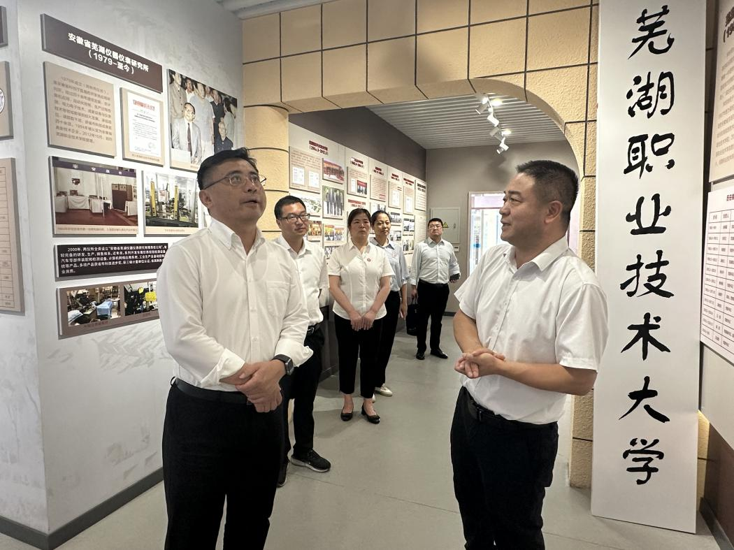 会谈前,郑啸一行在季慕寅陪同下参观了芜湖职业技术大学校史馆。