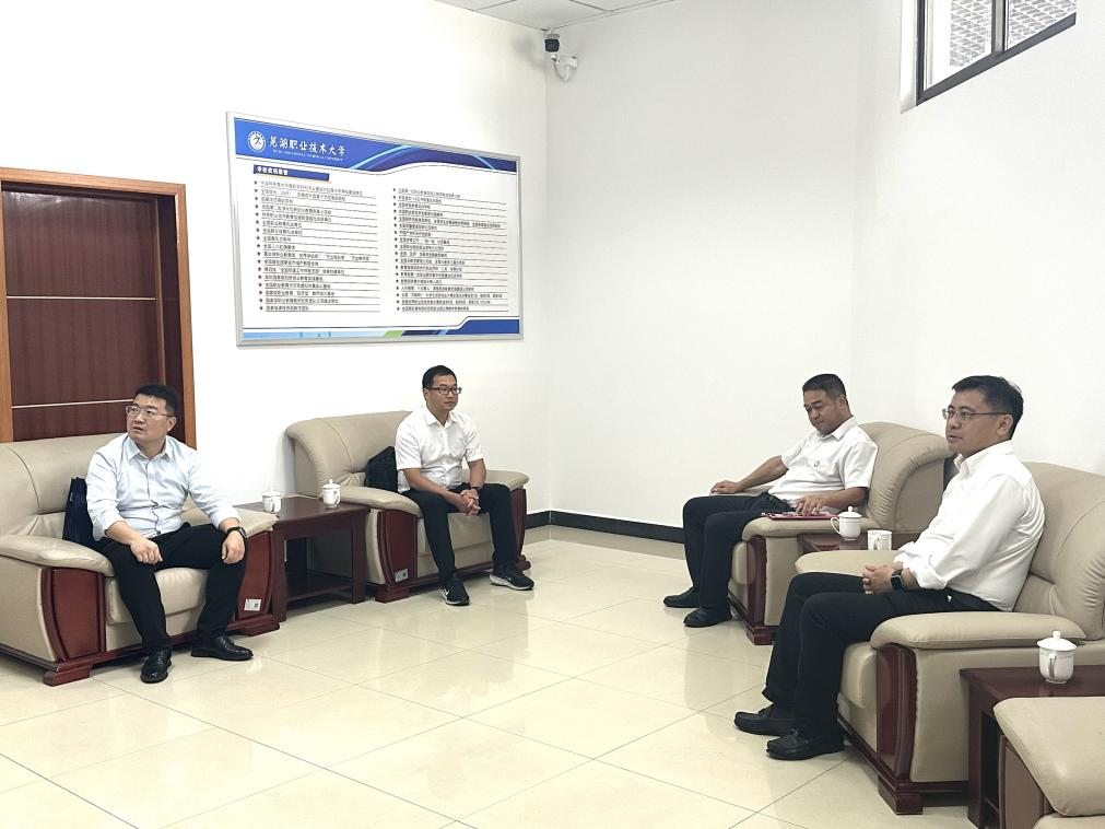 9月23日,正值2025级普通专升本联合培养新生开学典礼之际,安徽工业大学副校长郑啸、学生工作部副部长王萌、教务处副处长曹启定一行来访我校,就深化专升本联合培养合作、提升人才培养质量开展专题交流。芜湖职业技术大学行政负责人季慕寅携教务处等职能部门负责人出席会谈,双方聚焦“协同育人、提质增效”这一核心主题,在全面总结合作成果的同时,就未来发展路径展开深度研讨,为两校专升本联合培养提质培优谋划新篇章。