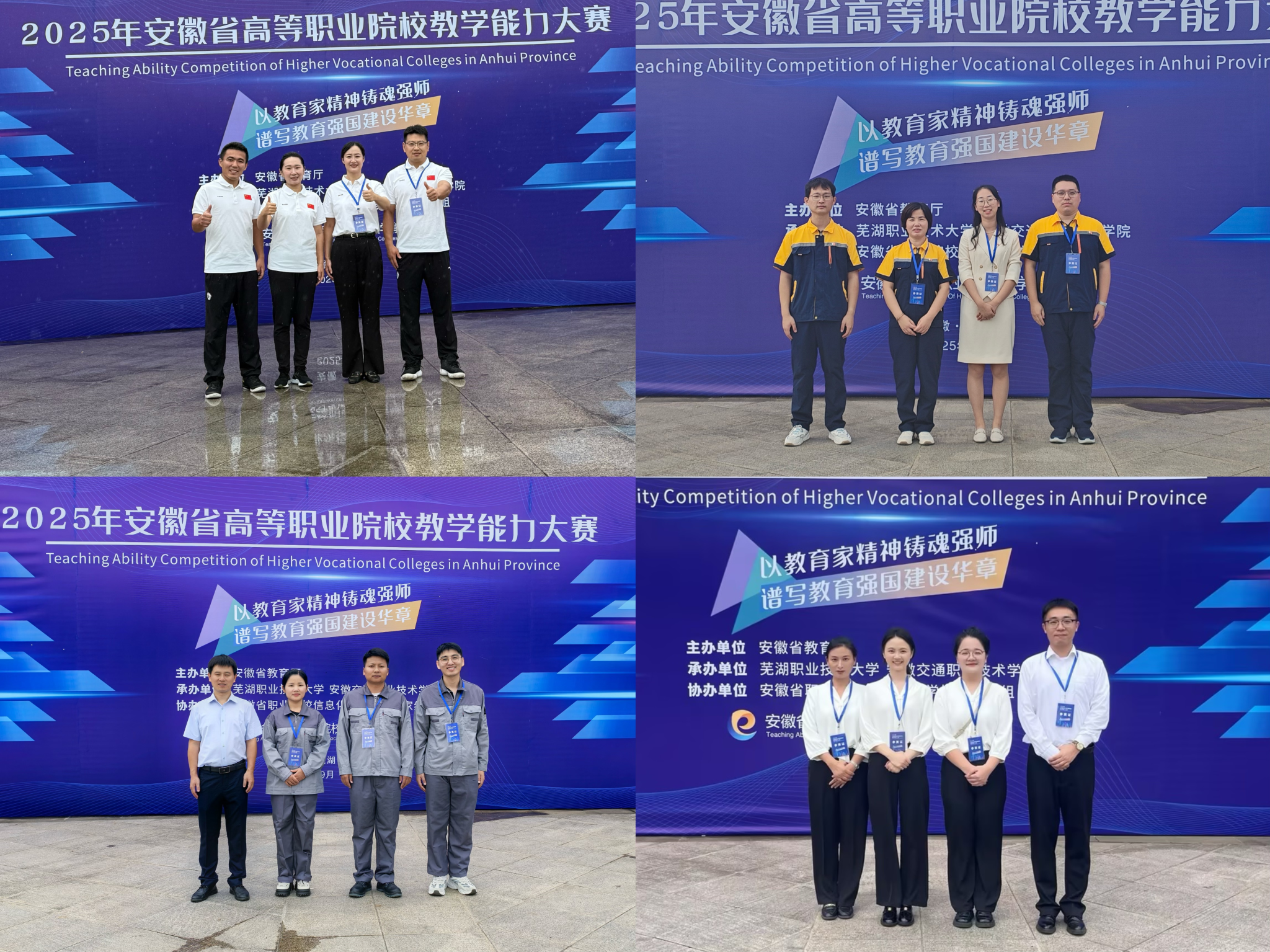 近日,2025 年安徽省高等职业院校教学能力大赛获奖名单正式公布,我校教师团队不负众望、表现卓越,一举斩获一等奖 5 项、二等奖 3 项、三等奖 3 项。其中,一等奖获奖数量及独立获奖总数均位列全省第一,以亮眼成绩彰显了我校聚焦“三大任务,着力打造高素质师资队伍的阶段性建设成效。
